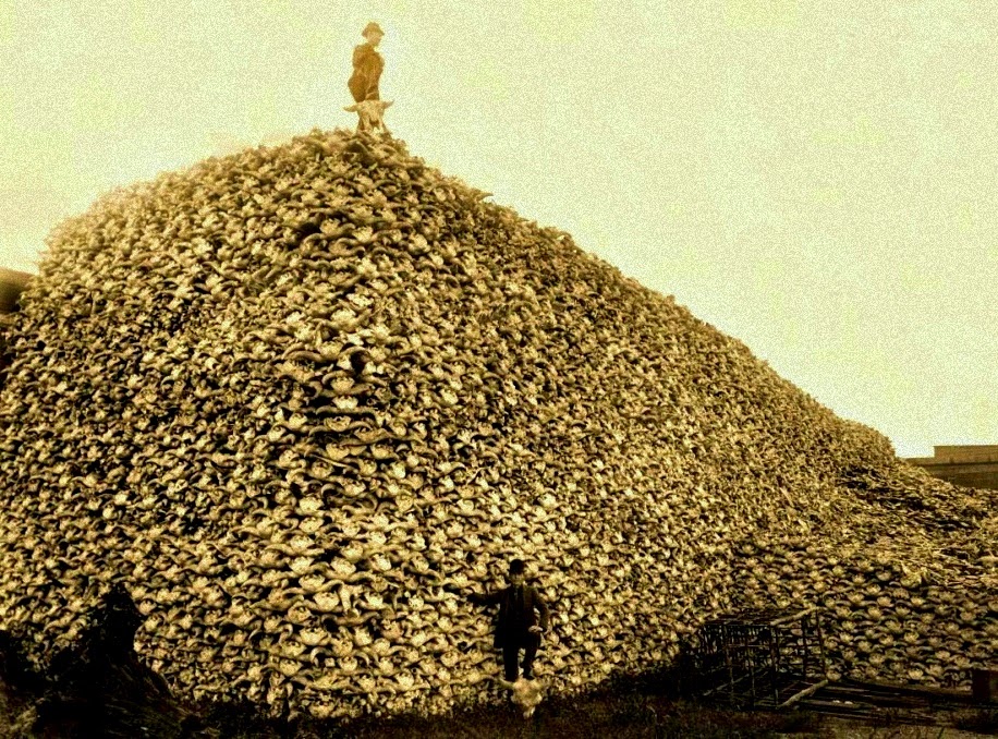 The US Army sanctioned and actively endorsed the wholesale slaughter of bison herds. The federal government promoted bison hunting for various reasons, to allow ranchers to range their cattle without competition from other bovines, and primarily to weaken the North American Indian population by removing their main food source and to pressure them onto the reservations. Without the bison, native people of the plains were forced to leave the land or starve to death.
